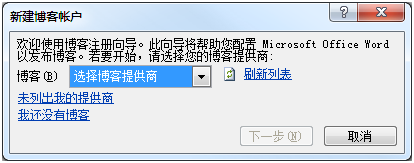打开WORD 2007,新建博客文章。选择注册账号: